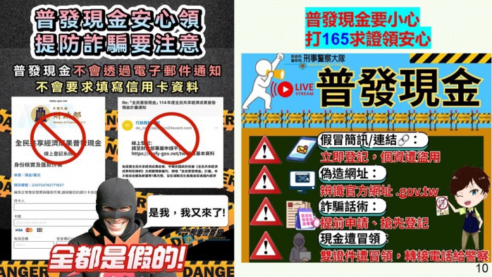 局長李權哲也提醒民眾慎防各類詐騙手法,近期已有詐騙集團利用普發現金一萬元消息,寄發假簡訊或提供連結,誘騙民眾填寫個資或盜取個人帳戶資料,也提醒民眾務必慎防小心,如有可疑訊息應立即撥打165或110查證。警察局除持續積極查緝車手、水房,並溯源追查核心成員、瓦解詐欺集團外,亦將加強與轄內金融機構、民間企業、社團、宗教團體、社區組織合作,共同防禦詐欺犯罪,並整合最新反詐資訊,針對不同族群進行識詐宣導,加強民眾識詐知能,守護縣民財產安全!