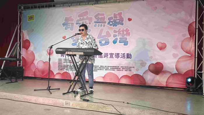 混障綜藝團演出由劉銘團長領軍,邀集多位具備不同身心障別的優秀表演者,透過舞蹈、音樂與特技等多元形式,展現無懼挑戰、超越自我的生命力量。無論是聽障、視障或肢障表演者,他們皆以堅定意志與豐富才藝,打破身體限制,呈現出深刻而真摯的生命故事。活動在劉銘團長與演出知名女演員李淑楨小姐共同主持介紹下展開序幕,接著由混障綜藝團成員帶來一連串精彩表演,首先登場的是肢障表演者沈彥霖帶來節奏感十足的爵士鼓演出,他以肢體不便卻精準有力的鼓點,展現音樂的力量與自我突破的勇氣,讓全場為之動容。