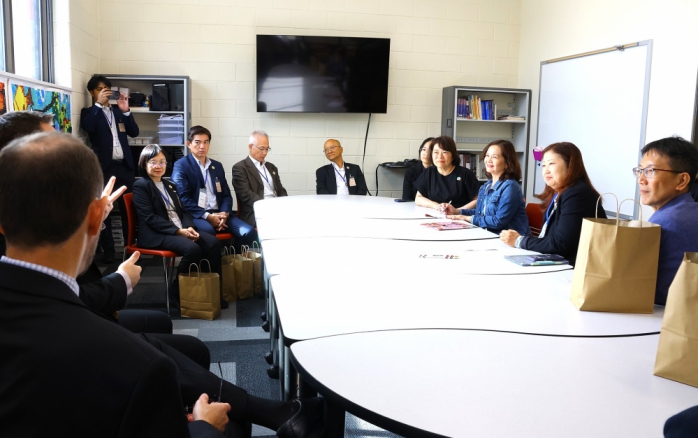 學區總監David Aderhold帶著首席學術官、副總監、教學督導以及國、中小校長等多位人員親自接待;雙方共同舉行「全球教育與永續發展目標(SDGs)相關實踐」座談會,交流討論教育永續發展議題,並期盼未來有更深入的交流及合作。
