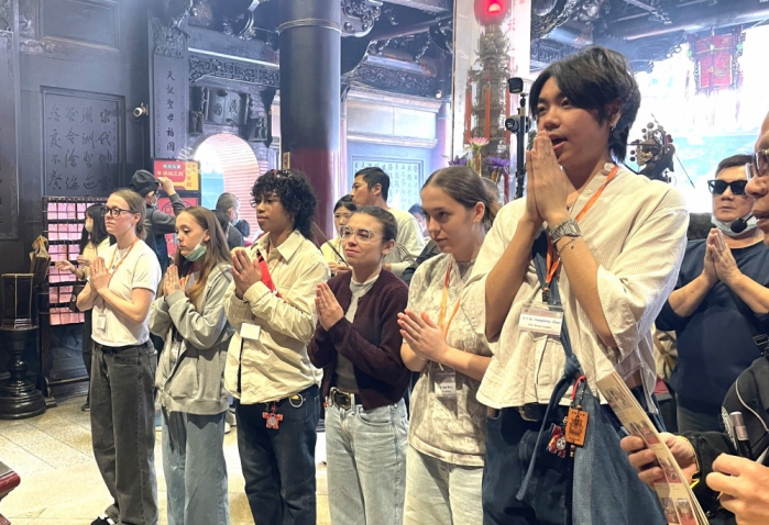 參訪團今天由北港朝天宮常務董事林恆毅代表陪同參拜,並歡迎跨海萬里來台進香的洋學生,期待這趟宗教之旅,深度了解台灣信仰後,成為媽祖在國際最佳代言人。