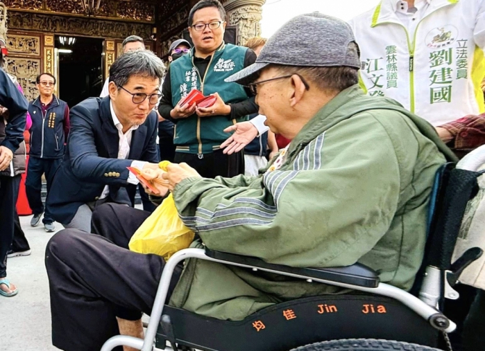 立委劉建國表示,他一早就到許多寺廟參拜與鄉親歡聚,下午陪同賴總統前往虎尾福安宮、斗六長和宮參香祈福並發放福袋,看到鄉親滿滿的熱情與笑容,內心真的很感動。