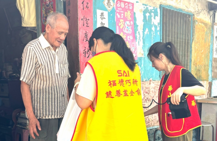 華山基金會秉持「結合本鄉本土愛心、照顧本鄉本土老人」理念,在台澎金馬設立402個愛心天使站,免費為3萬名三失(失能、失智、失依)長輩提供年節關懷、陪同就醫、原床泡澡等服務。