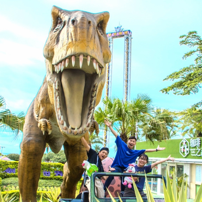 亞洲首發!「侏儸紀叢林荒野逃生」在【VR Dino 飛越恐龍谷】震撼登場,劍湖山世界獨家引進,藉由這趟驚心動魄旅程,將帶你穿越遠古叢林,躲避巨大恐龍的追擊,並在千鈞一髮之際獲得神秘盟友救援。