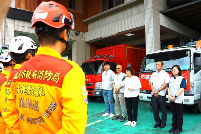市長黃敏惠為所有救援人員勉勵,期待藉特搜人員專業協助救災,各項機具及物資,能在花蓮最需要的此刻發揮作用,傳遞溫暖。
