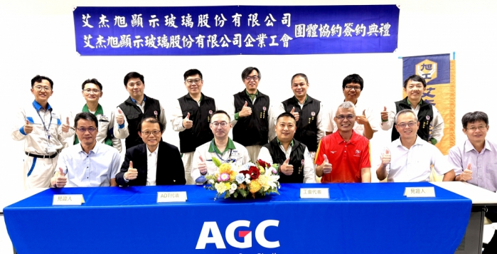 【記者陳信利/雲林報導】日商艾杰旭顯示玻璃(股)公司企業工會昨天(26日)在斗六一廠與資方完成第二度團體協約續約,提供工會會員優於《勞動基準法》保障,樹立外資企業勞資和諧的優良典範。