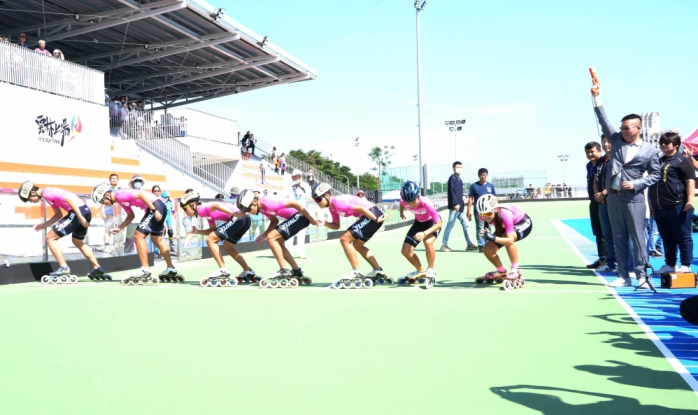 今天啟用的縣立滑輪溜冰場是滑輪溜冰比賽項目場地,設計與規格都比照國際比賽標準,提供選手最棒的競技場地,全力展現實力,拿到最好的成績。