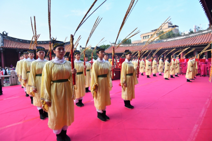 釋奠典禮於清晨5時30分,由崇聖祠開始,6時30分在大成殿,邀師鐸獎得主參與,藉此感念孔子「有教無類、因材施教」教育精神,讓儒學發揚光大。