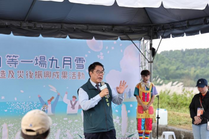 黃偉哲表示,今年大內區代表性經濟作物如酪梨、芒果、木瓜等因天災受損,收成大幅減少,農民承受壓力,希望甜根子草花海不僅成為浪漫的「九月雪」意象,也能與市集、食農體驗結合,吸引更多遊客購買在地農產品,支持農友,實踐「災後復原 × 經濟振興」的核心目標。