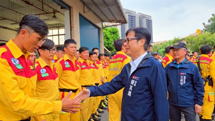 「高雄以大家為榮」,陳其邁向搜救團隊鞠躬感謝,並宣布所有參與救災人員都公假補休2天。