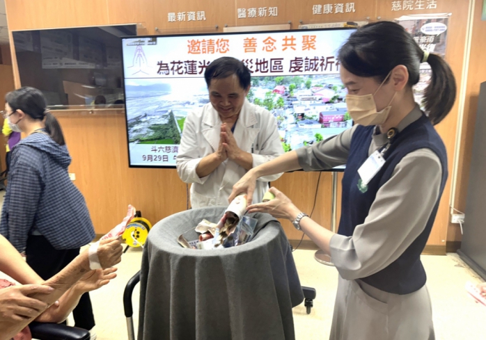 【記者陳信利/雲林報導】花蓮馬太鞍溪堰塞湖溢流重創光復鄉,斗六慈濟醫院於院內舉辦「募心募愛祈福會」,院長簡瑞騰上周率領護理長與同仁親赴災區投入賑災行動,協助清掃環境及醫療關懷,返院後分享親身見聞,期盼喚起院內外民眾共同關懷,匯聚愛的力量,協助災區早日復原!