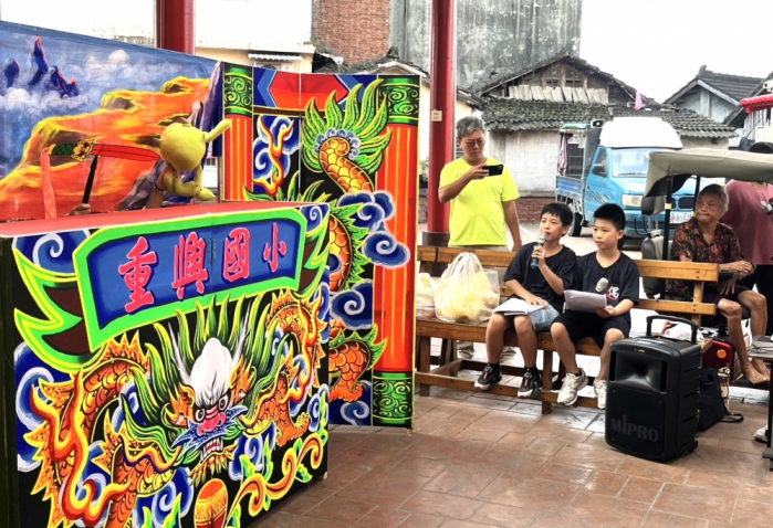 重興國小校長林志郎表示,在文化部藝文專案支持下,重興國小師生於今夏攜手專業布袋戲藝師,歷經1個多月密集訓練,共計36堂課程,利用暑假與正課時段安排,並由學校延伸至午休與社團時間加強練習。