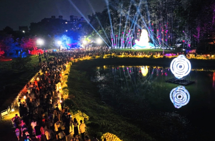 開幕首日,北香湖公園熱鬧非凡,遊客宛如置身光影魔法世界,每個角落都成為拍照打卡的熱門景點。