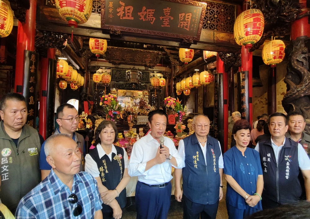新港奉天宮契子女中秋回宮團圓,縣長翁章梁出席祈福團拜。(圖/記者任禮清攝)