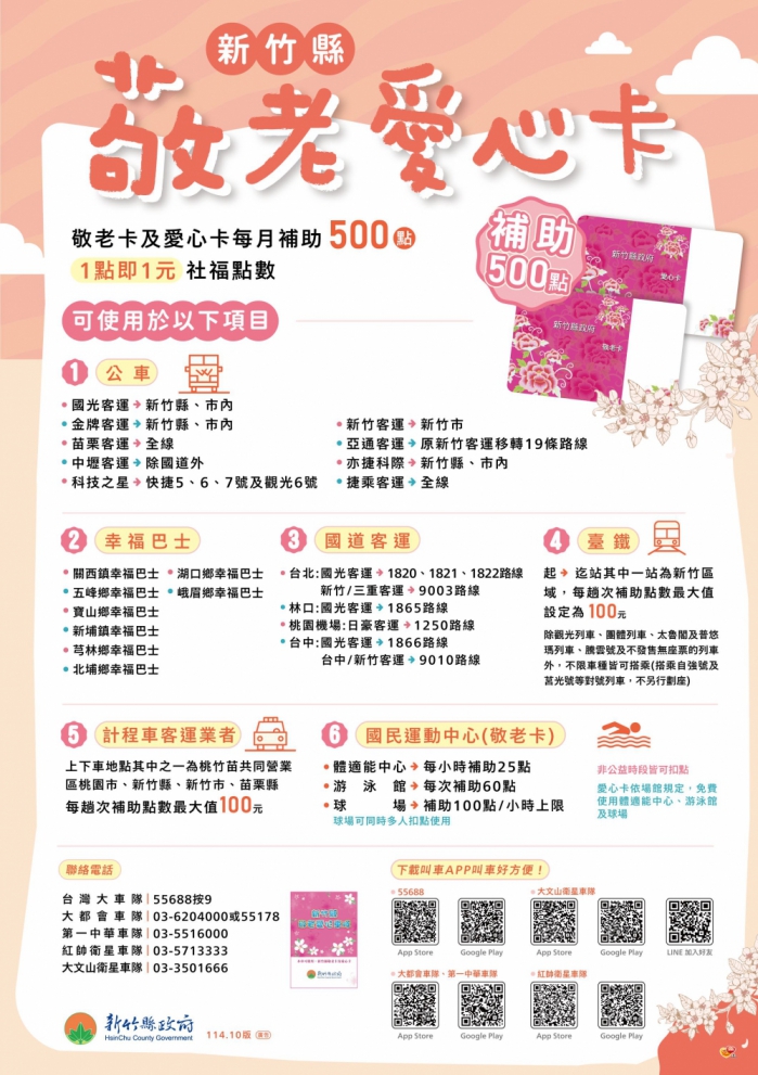 【記者林家琛/新竹報導】新竹縣政府10月起推出「114年重陽敬老月」系列活動,持有新竹縣敬老卡(55歲以上原住民及65歲以上長者)及愛心卡(領有身心障礙證明)的縣民,活動期間至新竹良品等15處合作商圈或店家消費,即享有店家所提供之各項優惠。
