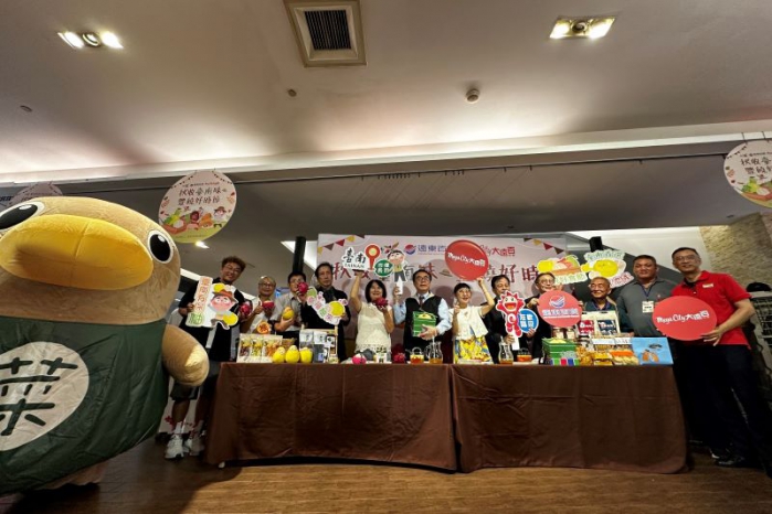 【記者蔡俊賢/台南報導】繼今年7月「今夏好芒~快閃登場」在板橋大遠百創下亮眼成績後,臺南市政府再次北上推廣農特產。市長黃偉哲今(10)日率領農業局及臺南在地商家,共同於Mega City板橋大遠百B1綠洲區舉辦「秋收臺南味 豐饒好時節」國慶連假三日快閃展售活動。現場除特別展示臺南吉祥物「巷仔貓」(巷仔Niau)迎賓外,還有市場處吉祥物「菜奇鴨」登場炒熱氣氛,吸引不少民眾駐足拍照打卡。