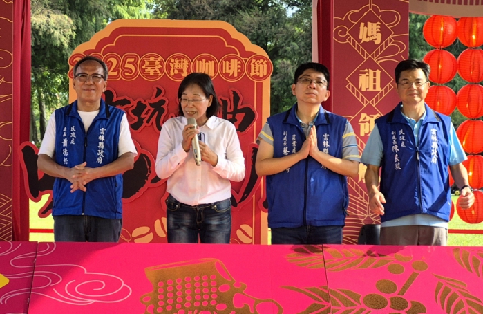 副縣長謝淑亞表示,綠色隧道公園經評鑑都是第一名,感謝北港朝天宮董事長蔡詠鍀慈悲為懷,朝天宮媽祖今年再次到訪古坑給鄉親福報,今天非常殊勝難得,台灣咖啡是全台飄香也與世界接軌。