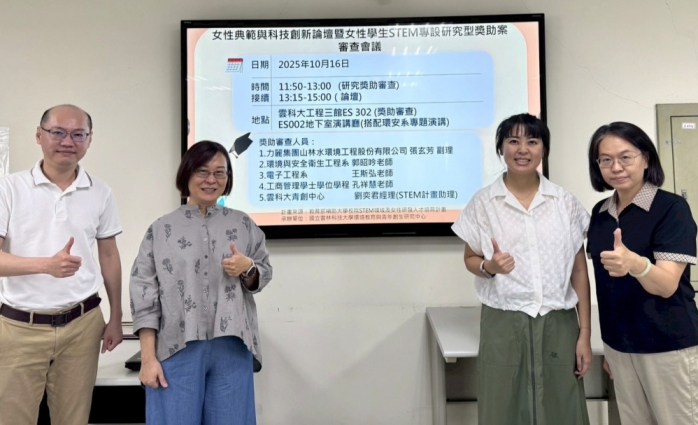 國立雲林科技大學為鼓勵更多女性投入 STEM(科學、技術、工程、數學)領域,今天(16日)舉辦「女性典範與科技創新論壇暨女性學生STEM專設研究型獎助案審查」,提供科研舞台。