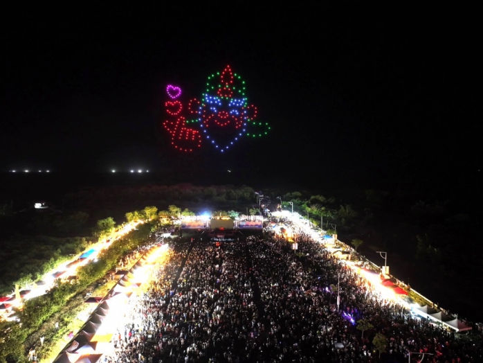 今年煙火節火力全開,每晚將施放四場壯觀煙火秀。首日晚間煙火長達1200秒,次日更延長至1680秒,結合音樂律動打造震撼視覺饗宴。現場安排200台無人機展演,排列出各式圖騰,以「海的風繞」揭開序幕,接續呈現「龜山島的日出」、「關聖帝君」、「熊兔之愛」、「媽祖到」,最後以英文「Toucheng」字樣作為結尾,為2025頭城煙火節點亮最美夜空。