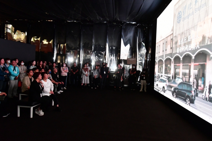 黃市長看見美術館內擺設彰化產業展區,許多後照鏡被排列,裝飾成一棵大樹,同時播放許多館內影像,如同不斷成長的彰化產業,在這塊沃土上被滋養著,並持續茁壯,最終綻放耀眼成就。