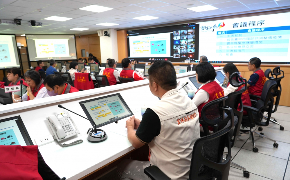 縣府各局處於今天中午召開「雲林縣非洲豬瘟緊急應變會議」,決議發送消毒藥劑給縣內1203家養豬場;在台61線設置化製車消毒站,針對進入雲林縣境化製車二度清消。