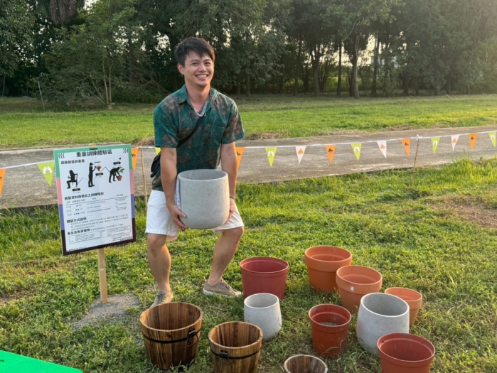 吳振發教授說,肌少症為銀髮族常見的健康威脅,導致肌肉量和力量下降,增加跌倒和慢性病風險,展區以﹁特異性、超負荷、循序漸進﹂三大運動原則為基礎,將園藝活動結合阻力訓練,從搬花盆、修剪花苗到混土,都能達到上肢與下肢肌群訓練效果,讓園藝成為可量化健康運動處方。
