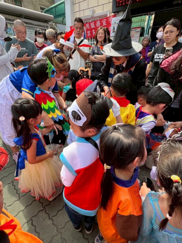 大寮戶政所主任楊美玲表示,非常開心與在地幼兒園的孩子們一起歡慶萬聖節,小朋友們一身可愛又充滿巧思的裝扮,還有他們開心的笑容,讓一起參加的爸爸媽媽們和現場民眾感受到節日的魔法,面臨少子化時代,鼓勵青年男女多多適齡婚育。更希望藉由這樣輕鬆有趣的活動,增進與社區間的互動交流,也讓孩子們從小認識戶政機關,展現政府單位的親民和友善的服務精神,