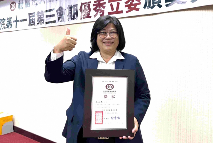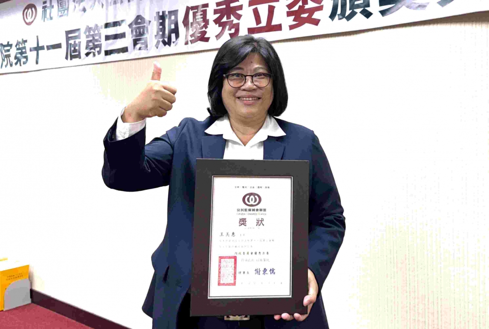 立委王美惠表示,感謝公督盟及各評鑑單位的肯定,問政認真是本份,但每一次的肯定,都是她最大的榮耀,也是最強的鼓勵。