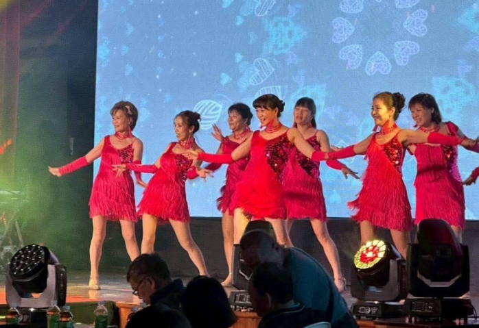 鎮公所指出,會場特別打造復古「時光廊道」,重現早年歌廳秀風華,讓走入禮堂的賓客宛如踏進時光隧道,重返黃金年代,感受濃厚的懷舊氛圍。