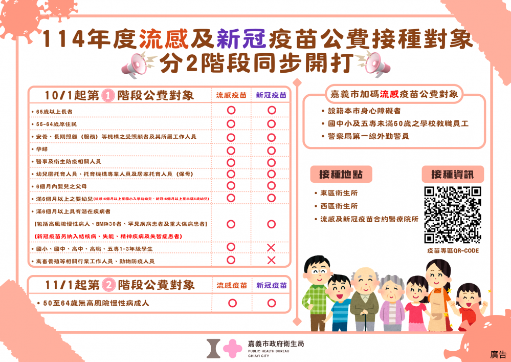 ◆有關流感及新冠疫苗合約醫療院所和社區接種站等相關訊息,可至衛生局官網/主題專區/疫苗專區:https://gov.tw/kAP查詢,也歡迎電洽衛生局:05-2338066詢問。(圖/市政府提供)