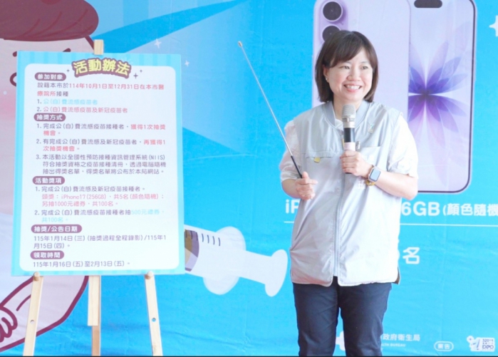 市政府衛生局長廖育瑋表示,設籍嘉義市市民於今年10月1日至12月31日期間,在本市醫療院所(含學校及社區接種站)接種公(自)費流感疫苗及新冠疫苗者最多可獲得2次抽獎機會。