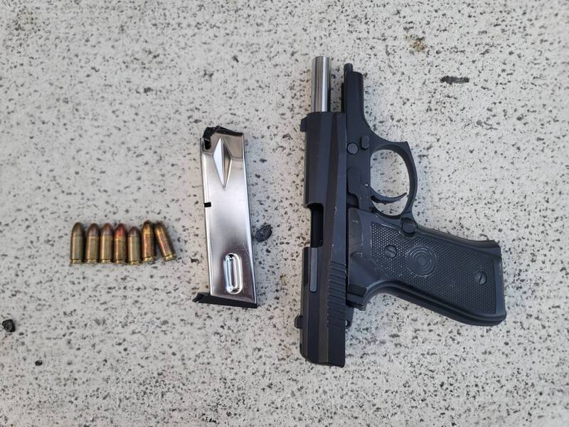 警方發現林嫌駕駛座位置有異,查看可疑口香糖包裝袋子中,竟藏有1支槍管、4顆已擊發的子彈,警方立即提高警覺擴大搜索,並於副駕駛座位置底下查獲改造手槍一把及7顆未擊發的子彈。