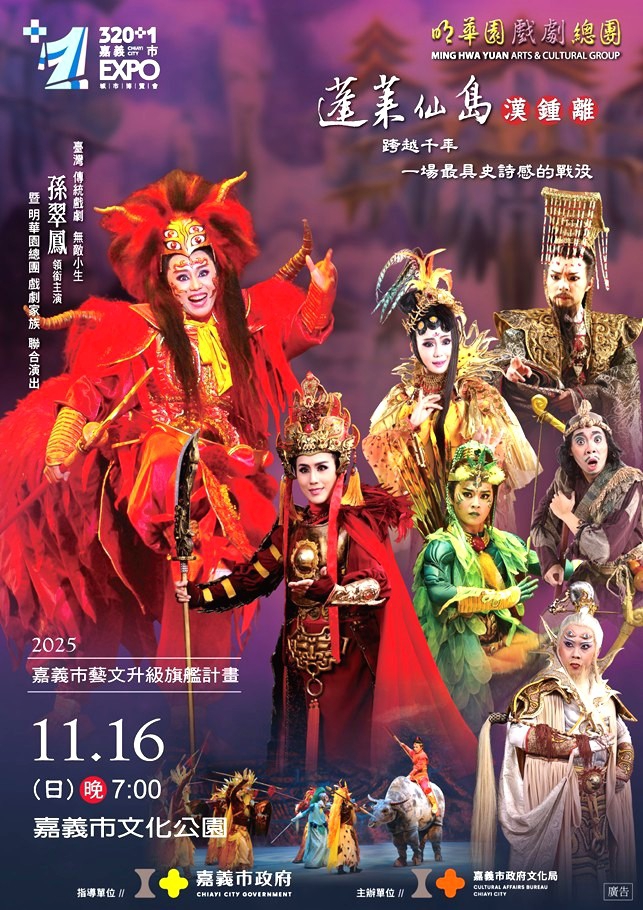 【雲嘉特派員陳信利/嘉義市報導】今年適逢「嘉義建城320+1」城市博覽會,市政府特別邀請國內傳統戲曲重量級團隊—明華園戲劇總團,於11月16日(周日)晚間7點,在嘉義市文化公園隆重演出旗艦大戲《蓬萊仙島-漢鍾離》,邀請市民朋友一起感受史詩級視覺震撼。