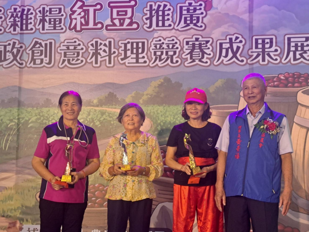 【記者陳信銘/高雄報導】大寮地區有優質紅豆與良質米,大寮區農會今(8)日舉辦米食推廣創意料理競賽暨家政成果展活動;米食創意料理競賽由三隆家政班(喜氣紅龜粿)奪冠。農會為炒熱現場氣氛特別邀請藝人蔡義德及辦桌二人組演出。