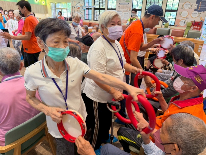 音樂老師邀日照中心長輩加入,以簡單節奏器具和鳴,長輩笑說:「好久沒這麼熱鬧了。」、「活動真開心。」現場氣氛溫馨、活力,長輩互動,相互鼓勵,處處可見樂齡活力美好畫面,音樂成為連結彼此心靈橋樑。