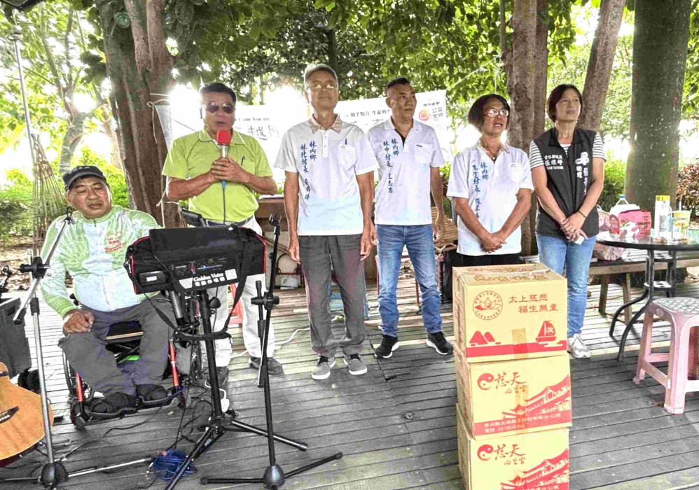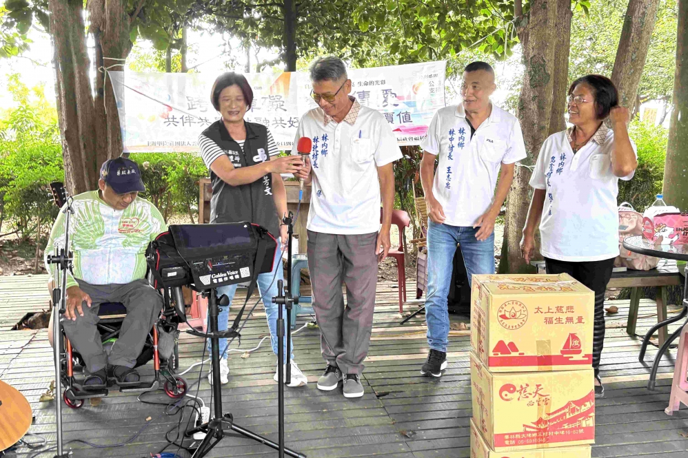 【記者陳信利/雲林報導】雲林縣愛無礙協會於今天(15日)在林內驛站舉辦的「攜手傳愛」活動,帶著大埤鄕慈天必生宮捐贈的41份關懷物資到林內驛站發放,現場愛無礙協會「不老無礙樂團」以音樂和鄉卿親同樂,一起歡唱,樂團成員為身障夥伴與高齡朋友,他們用真摯的音樂和歌聲,傳達出對生命的熱力。