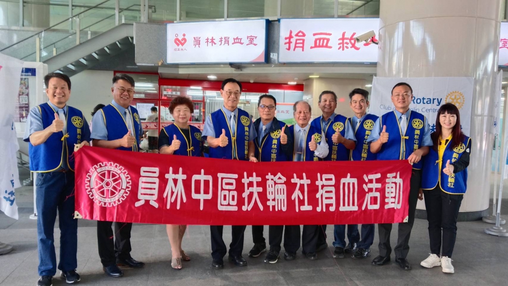 員林中區扶輪社社友分批到捐血處的員林火車站捐血室,協助捐血工作,最早班的社友有社長楊文隆、副社長劉成枝,前社長張勝雄、祕書李杉連、社務行政主委謝武章、社區主委張庭彰、財務長黃榮明、服務主委陳鴻基和社祕等人,陳鴻基還贊助香甜多汁橘子,供社友解渴。