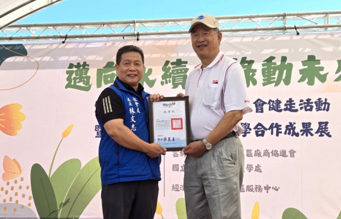 雲科工廠協會健走活動並結合雲科大產學合作舉辦成果展,雲科大學校長傳育指出,雲科大具有很強的AI研發量能,期望未來可更加深化與廠協會會員廠商們的合作,協助產業提升競爭力。