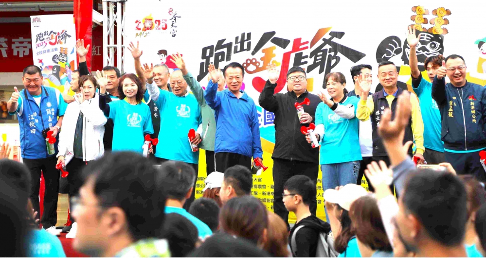 【雲嘉特派員陳信利/嘉義報導】嘉義縣新港奉天宮今天(23日)舉辦「跑出金虎爺」全國路跑賽,吸引來自全國各地約6000名熱愛跑步的選手參與,現場氣氛熱烈。縣長翁章梁等人也到場與民眾一同熱身,並為選手們加油打氣。