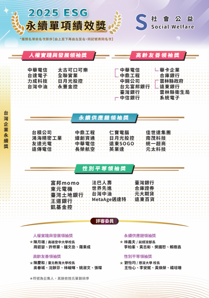 主辦單位示,此獎項評選重點在於永續治理的全面性、政策執行力與長期社會影響力,張縣長在低碳轉型、循環農業、弱勢照顧、醫療提升及韌性城市推動等面向都具體展現施政成果。