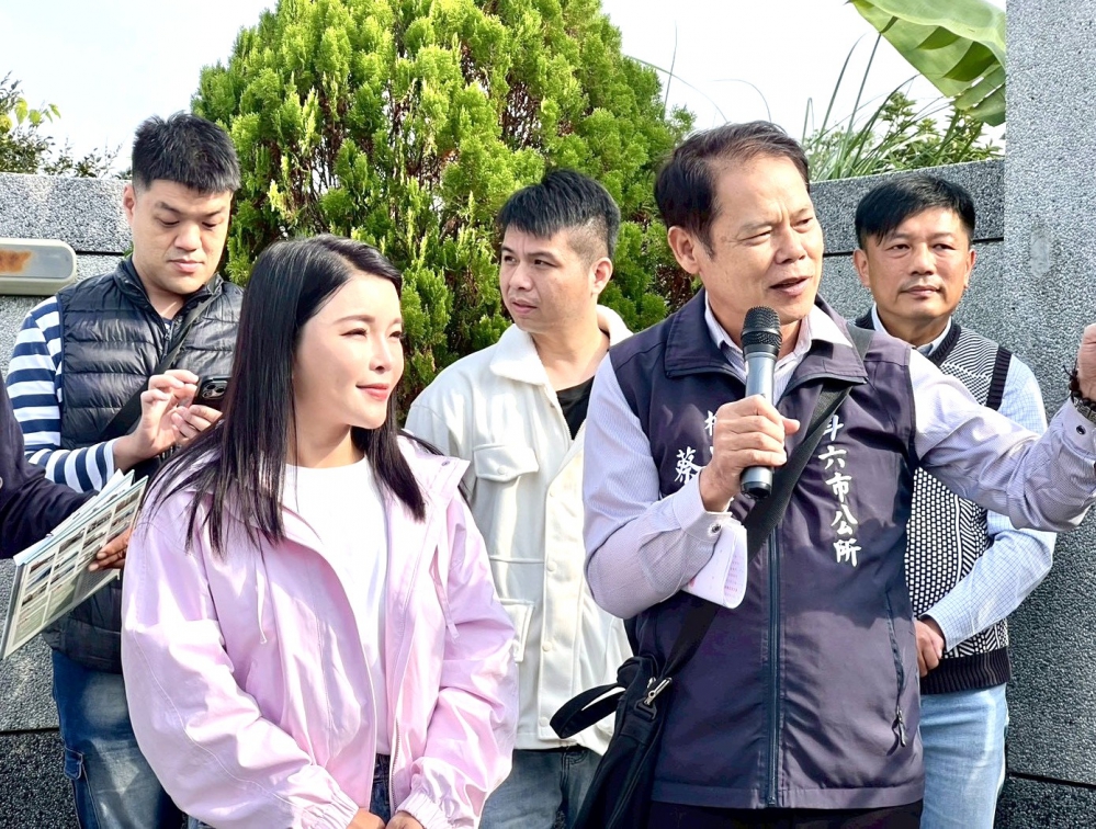 今天陪同會勘者有斗六市長林聖爵、縣議員賴明源、王秋足、黃勝志、陳芳盈及服務處副主任陳誌陽等人,接連實地現勘斗六市與古坑鄉等4處急待改善設施,包括農路改善、坑溝整治及邊坡治理等5項工程。