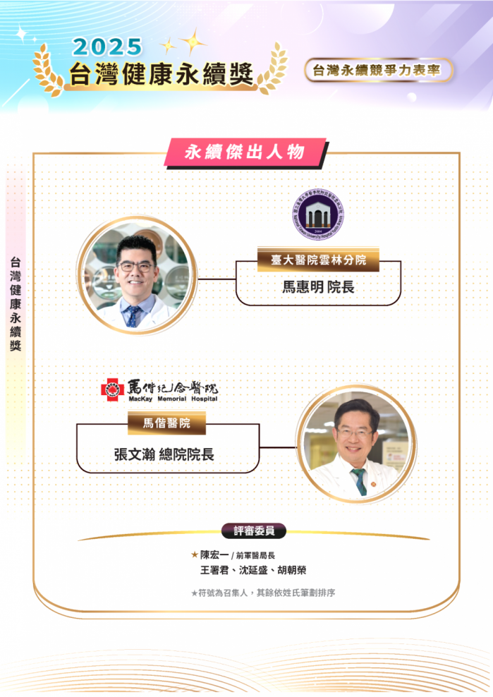 【記者陳信利/雲林報導】「打造智慧永續照護,開創偏鄉醫療新典範」!臺大醫院雲林分院院長馬惠明,以其橫跨急診醫學、公共衛生與醫療政策的專業,以及長期深耕中台灣偏鄉醫療卓越貢獻,榮獲「2025台灣健康永續獎-傑出人物獎」殊榮!