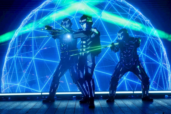 今晚的啟動點燈儀式特別邀請「AI智能生化人LED震撼擊鼓互動秀」登場,結合現代科技與傳統打擊樂,透過璀璨LED燈光、震撼音樂與力道十足的擊鼓表演,帶來視覺與聽覺的雙重震撼,由張永德鄉長宣布「礁溪溫泉燈花季」正式展開。