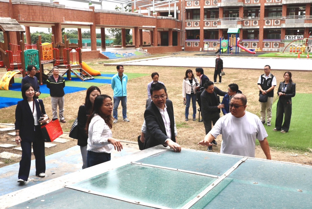 雙方並討論台積電嘉科封裝場目前施工及人員進駐安置進度,隨後台積電團隊並前往協助修復的和興、沄水國小,現勘執行成果。