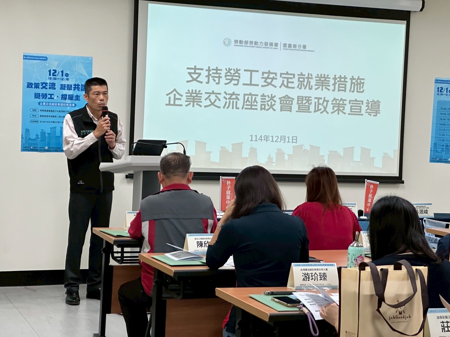 [記者任禮清/嘉義報導] 勞動部朴子就業中心為協助企業因應國際情勢提前布局,1日在馬稠後產業園區污水處理廠行控中心,舉辦「支持勞工安定就業措施企業交流座談會暨政策宣導」,是嘉義地區年度的壓軸,由朴子就業中心、嘉義縣政府經濟發展處及馬稠後園區廠商協會共同主辦,跨單位合作攜手支持企業穩健運作,受到產業高度關注,共24家廠商、30位企業代表踴躍參與,展現產業積極掌握政策資訊的需求。