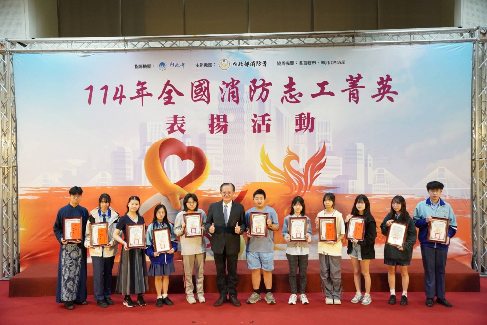 活動中,除了表揚志工外,還頒發獎項給予114年參與國家防災日大規模震災救災動員演練的22名民間團體代表、14名防火宣導微電影徵選競賽得獎人,以及42名居家一氧化碳中毒預防四格漫畫競賽得獎人,表彰他們在防救災工作上的努力,齊心守護臺灣民眾的安全。