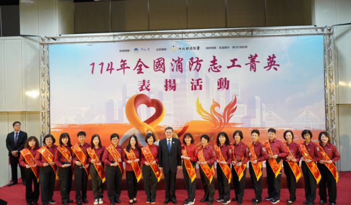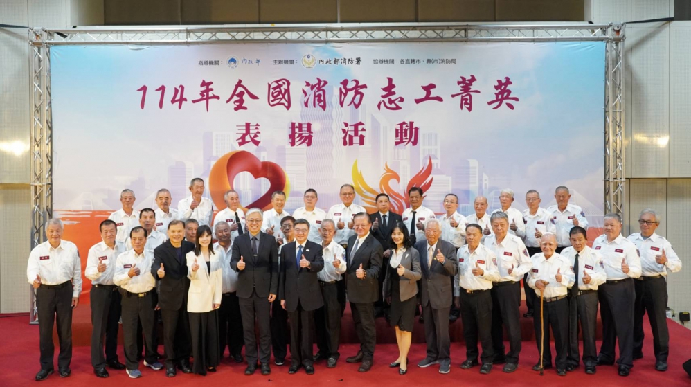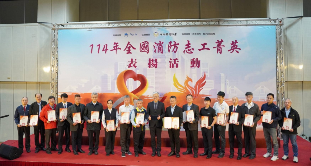 今(5)日為聯合國「國際志工日」,內政部特別舉辦「114年全國消防志工菁英頒獎表揚活動」,以表彰在災害防救、救護及防火宣導方面奉獻心力的志工。行政院長卓榮泰、內政部次長吳堂安、行政院災害防救辦公室主任王怡文及消防署署長蕭煥章等重要官員出席,為全國45名消防志工菁英以及49名服務滿40年及45年以上的資深義消頒獎,感謝他們的無私奉獻與貢獻。