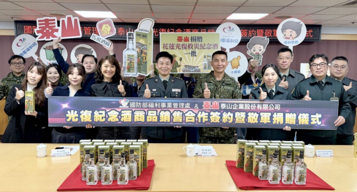 向救災國軍弟兄和「鏟子英雄」致敬,泰山企業與國防部福管處攜手,限量推出「花蓮光復救災紀念酒」,除可長久存放外,並給這場軍民救災行動留下英勇紀錄。