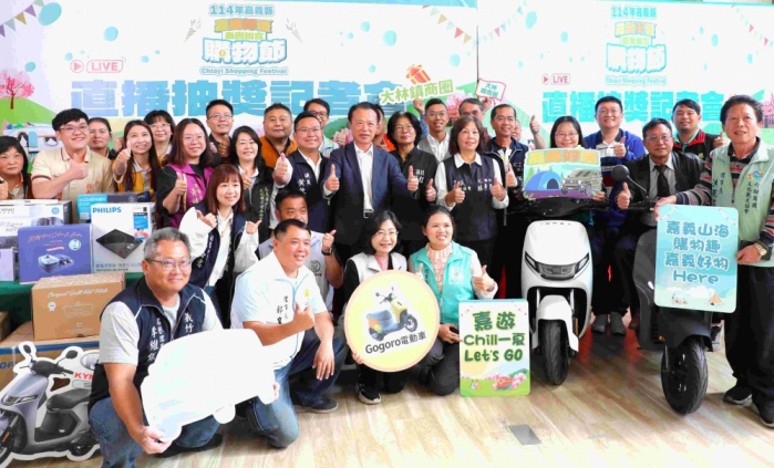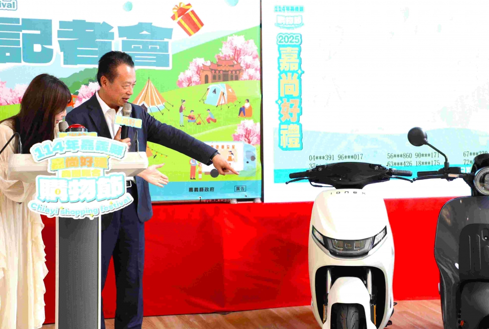 【雲嘉特派員陳信利/嘉義縣報導】嘉義縣政府攜手19個商圈及大嘉義觀光工廠協會,推出為期2個月的「商圈聯合購物節」,活動期間累計消費金額突破7.2億元,經濟效益亮眼,今天(9日)在縣府舉辦直播抽獎,由縣長翁章梁親自抽出最大獎J SPACE露營車並致電幸運得主表達恭賀。