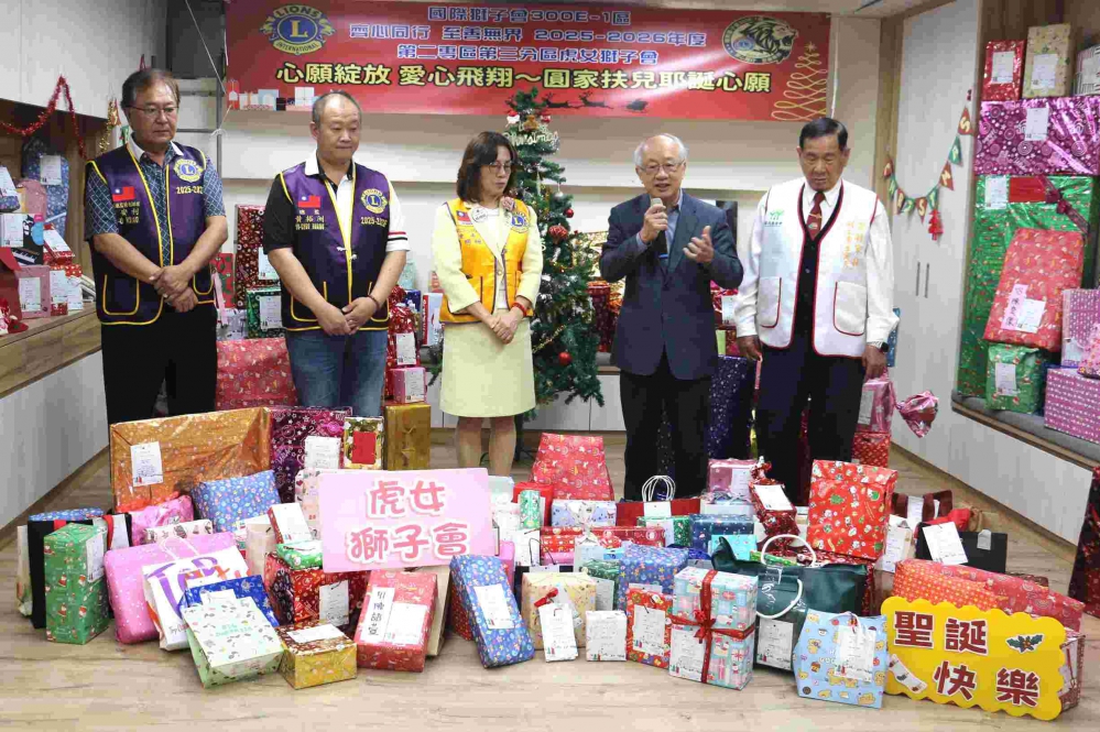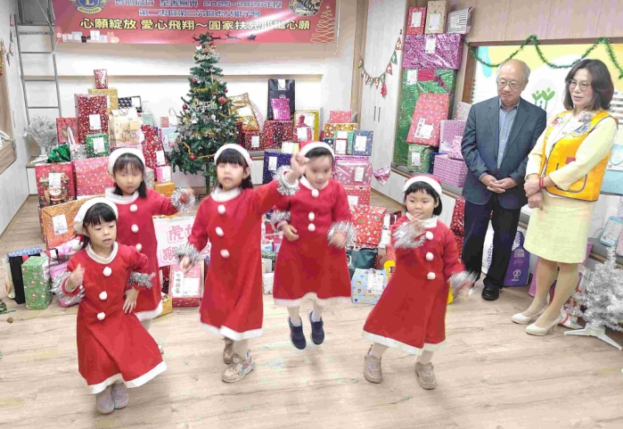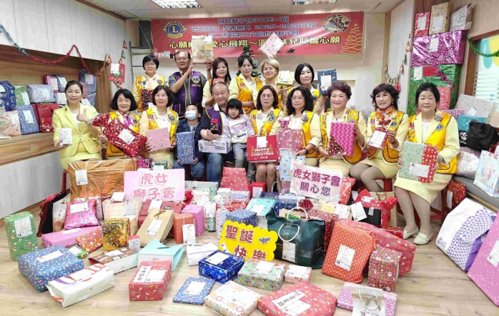 虎女獅子會楊明婉會長歡喜稱呼自己成了聖誕奶奶,與獅姊們大家努力採買與花巧思包裝,希望家扶兒童歡欣獲得禮物與祝福,讓聖誕鈴聲歡樂圍繞迎接新的一年。
