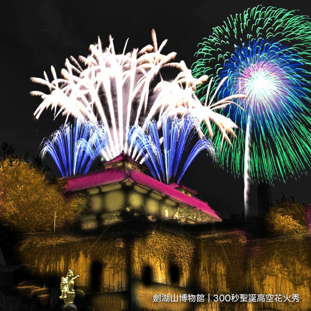 當天晚上6點30分將在劍湖山茶花館前施放「300秒聖誕高空花火秀」,絢麗的煙火將點亮雲林夜空,營造最浪漫的聖誕之夜!